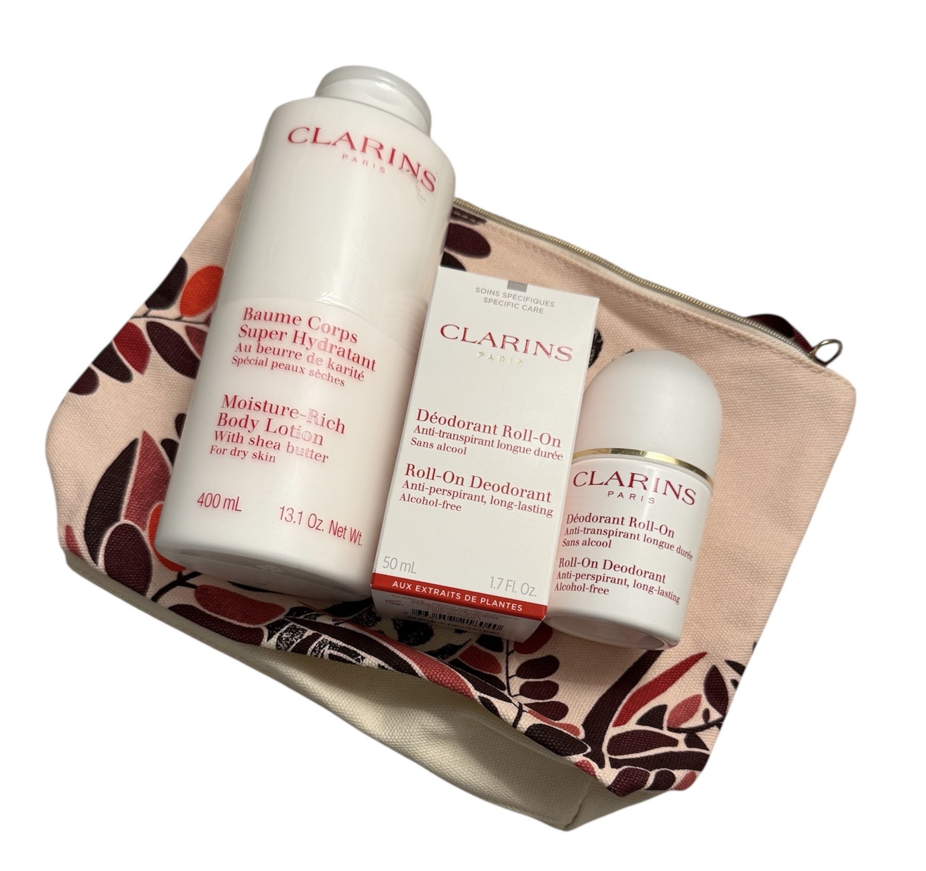 Lyxig kroppsvård med två av Clarins mest ikoniska produkter i trevlig necessär. Unna dig själv eller någon du tycker om dessa mjukgörande och rikt fuktgivande produkte som ger huden ett silkeslent resultat – Nu till ett fantastiskt pris.